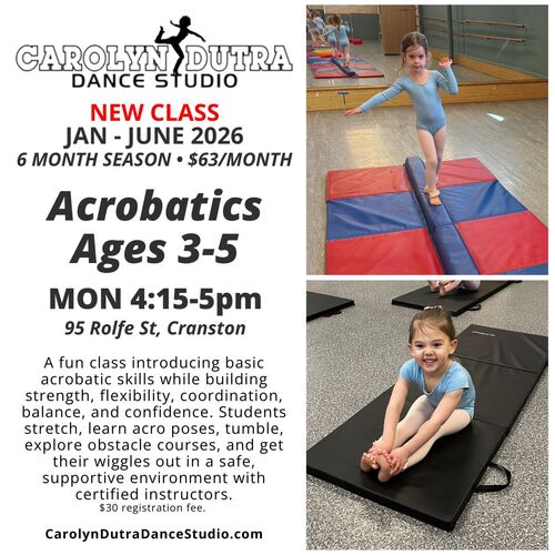 - Acro Level 1 Saturdays 12:15-1:15pm Warwick