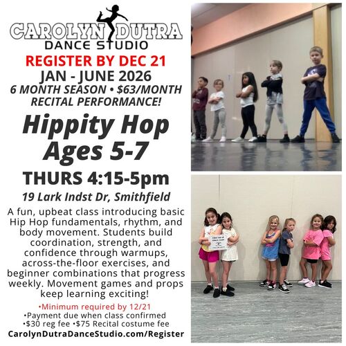 Classes may be offered in : Ballet, Tap, Jazz, Yoga, POUND Fitness, Zumba and more!