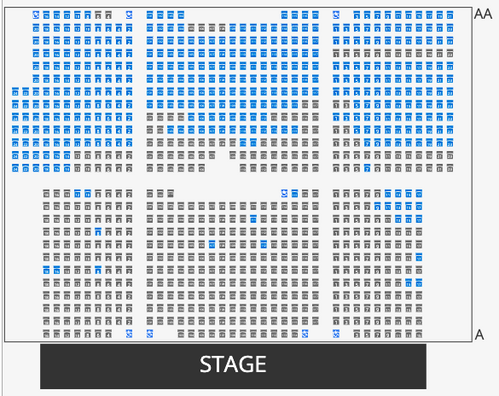 Seating chart example: Row AA is the back of the auditorium. Seating is on an angle. Upper section has stairs.