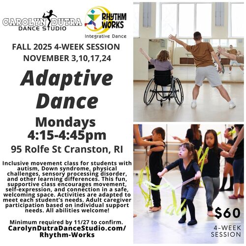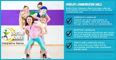 Rhythm Works Integrative Dance is a specialized, but inclusive, dance and rhythm program designed for those with individual learning differences and special needs. The program uses evidence-based therapeutic practices to achieve developmental goals. To our students, it’s a fun and exciting activity that provides participation and socialization opportunities. Staff is certified to teach this amazing program. Therapist or parent participates with student if needed.